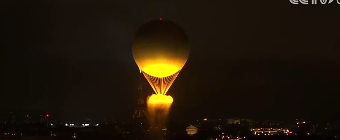 巴黎奥运会主火炬是一个热气球,被点燃后飞向天际。