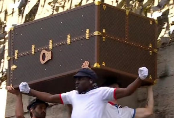 来自世界各地的运动员乘坐近百艘游船,从奥斯特里茨桥由东向西出发,航行6公里至埃菲尔铁塔对岸的特罗卡德罗广场,参加在那里举行的庆祝仪式。在大约45分钟的航程中,运动员们从东向西穿越巴黎市中心,并看到巴黎多个标志性建筑。塞纳河上载着205个代表团的85条游船就是舞台,参加开幕式的运动员代表,他们就是这个剧院中的主角。