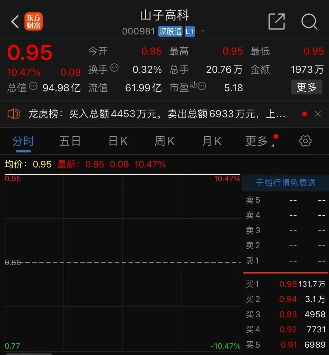 受此影响,7月29日山子高科开盘一字涨停,截至收盘报0.95元/股。