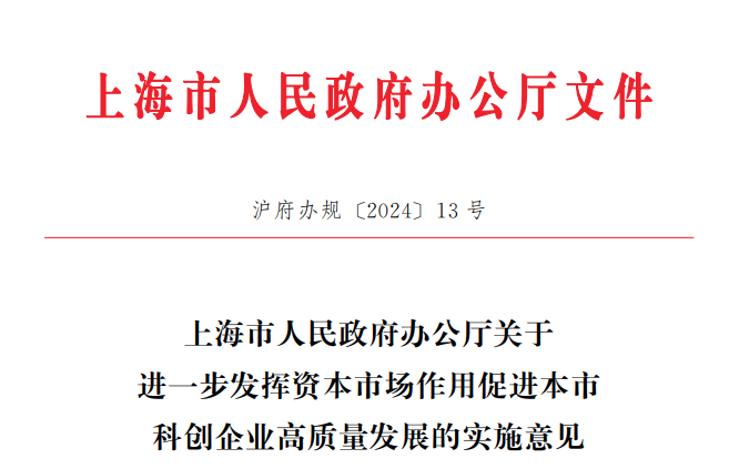 7月31日,上海市人民政府办公厅发布关于进一步发挥资本市场作用促进本市科创企业高质量发展的实施意见。