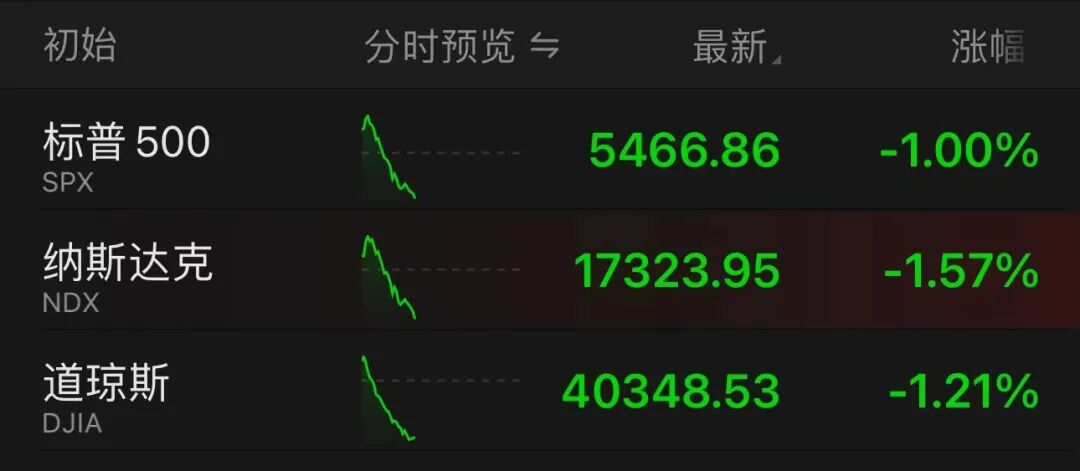 美股直线跳水,由涨转跌。截至发稿,标普500、纳斯达克指数、道琼斯指数均跌超1%。