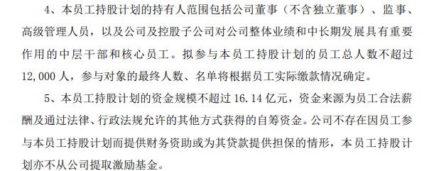 公告显示,格力电器第三期员工持股计划购买公司股份的价格为20.31元/股(截至8月2日收盘,公司股价报收于40.65元/股);总资金规模不超过16.14亿元,由参与员工自筹。