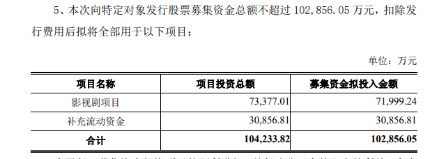 谈及本次发行的目的,华谊兄弟直言,本次向特定对象发行股票拟将部分募集资金用于影视剧项目,有助于公司聚焦主业,挖掘优质影视资源储备,顺应行业发展导向,打造出符合时代需求、符合市场需求的精品头部剧作,巩固行业地位,保持市场竞争力。