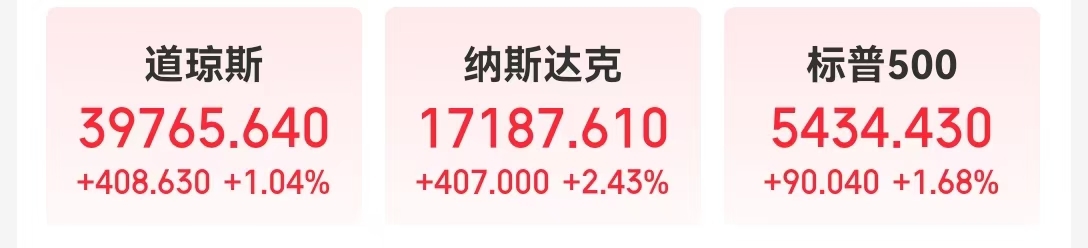 “科技七姐妹”全线上涨。英伟达涨6.53%,市值一夜增加1752亿美元(约合人民币12537亿元);苹果涨超1.72%;亚马逊涨2.06%;特斯拉涨5.24%,“元宇宙”Meta涨2.44%,谷歌A涨约1.15%,微软涨1.77%。