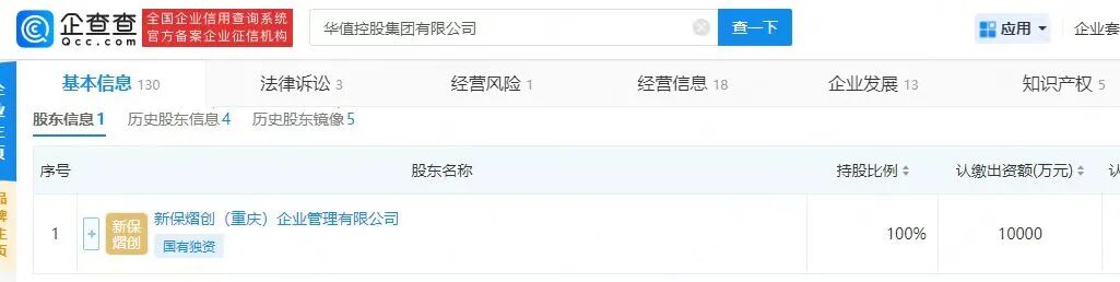 新保熠创全资控股华值控股集团有限公司(下称“华值控股”)。华值控股成立于2020年4月1日,注册资本为1亿元。华值控股官网称,公司隶属于保利集团。