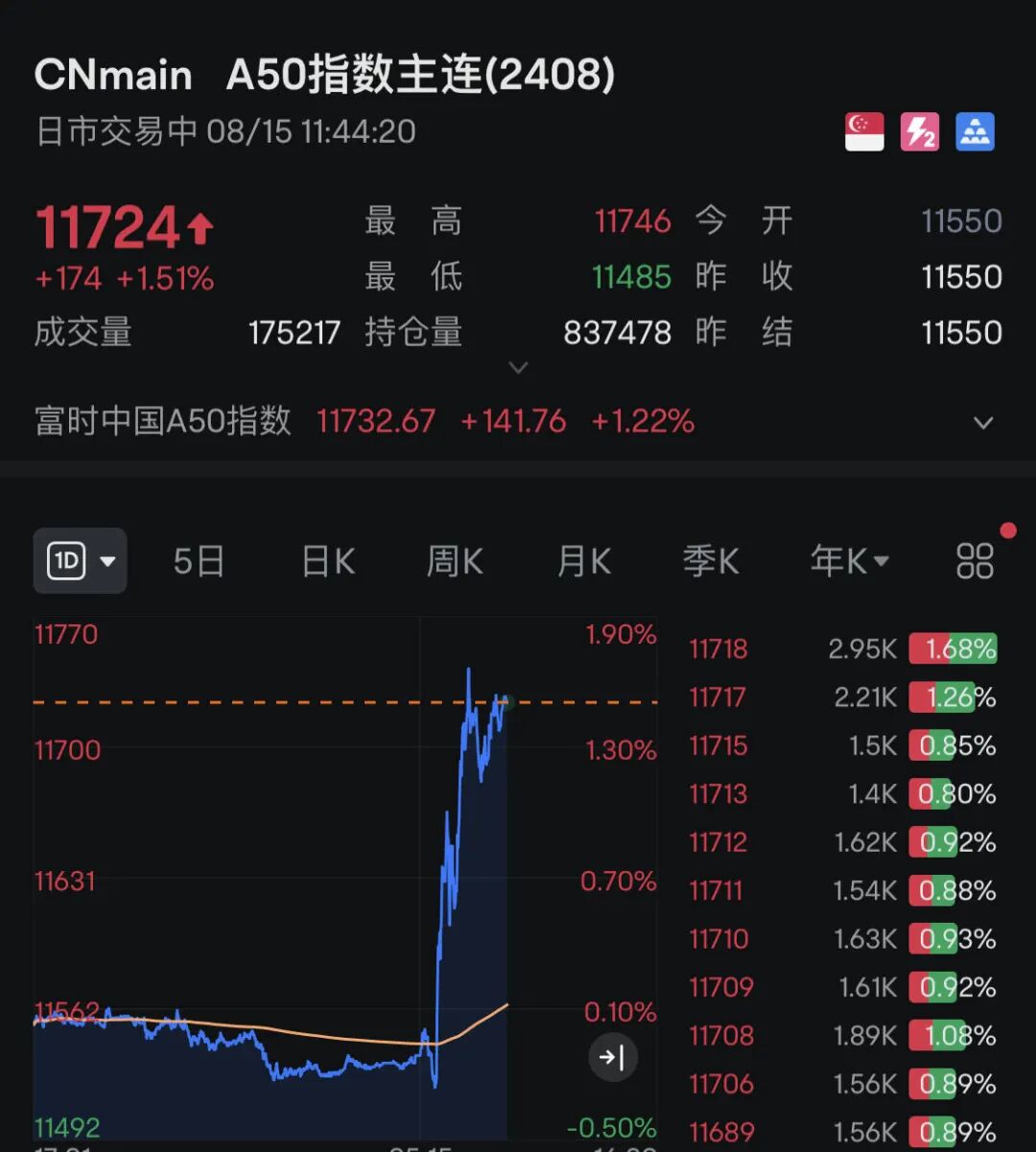 沪深两市主力资金开盘净流出超46亿元,随后反转净流入超20亿元。富时中国A50指数期货盘中大幅拉升,截至发稿涨幅1.51%。