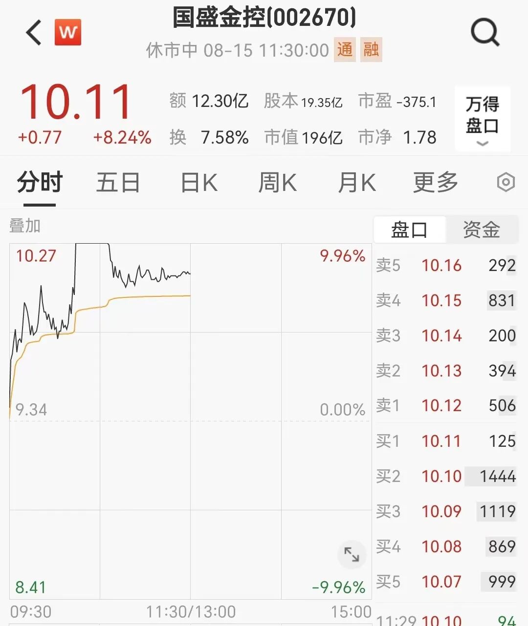 有“牛市旗手”之称的券商板块开盘后持续拉升。国盛金控一度涨停,午间收盘涨逾8%,海通证券、天风证券、太平洋证券等跟涨。
