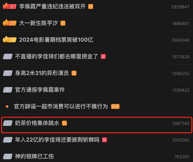 今日,#奶茶价格集体跳水#!#奶茶重回10元以下#的消息冲上多个平台热搜。
