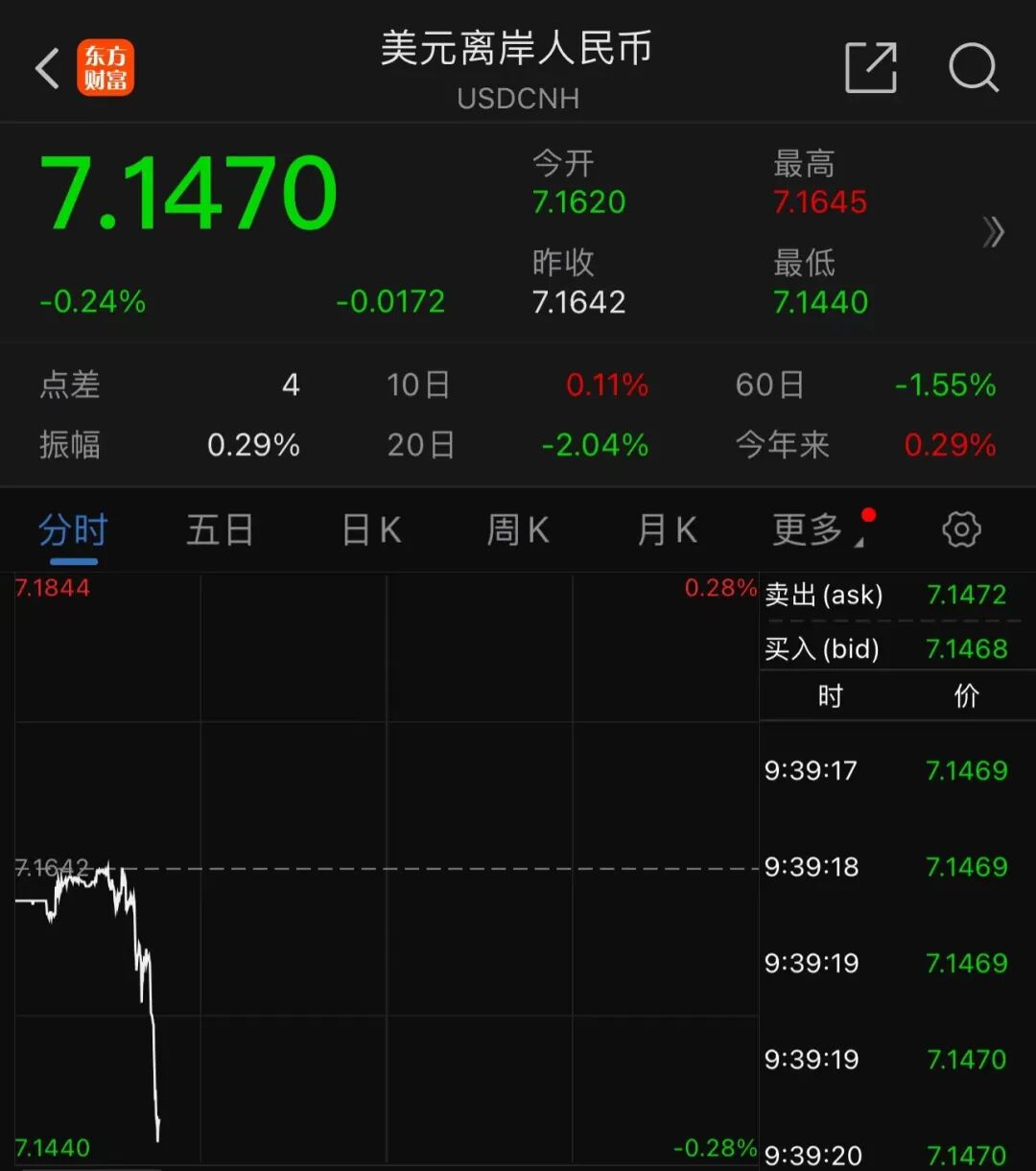 离岸人民币迅速上涨,兑美元调升172个基点,报7.1470。