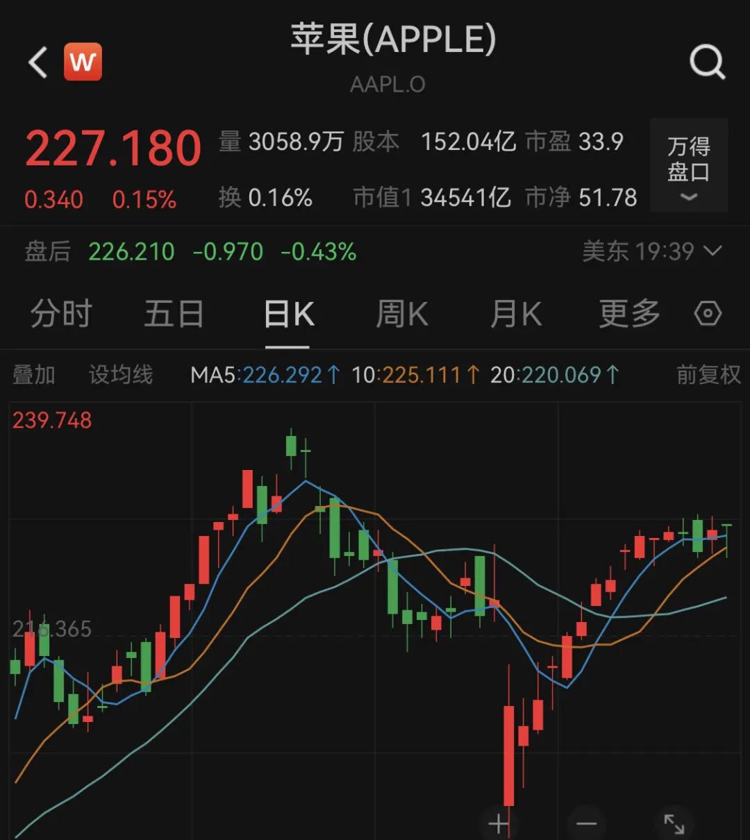 消息公布当日(北京时间8月27日),苹果股价美股盘后跌0.43%。