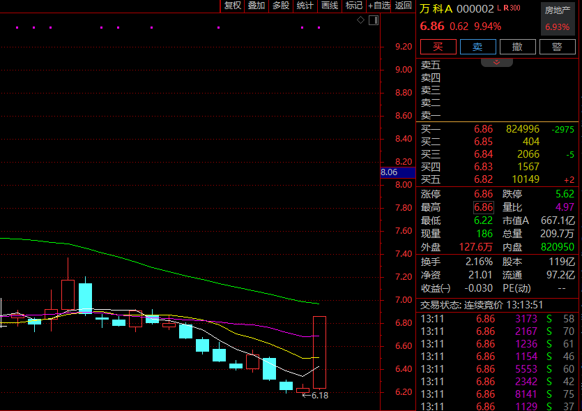 万科A涨停