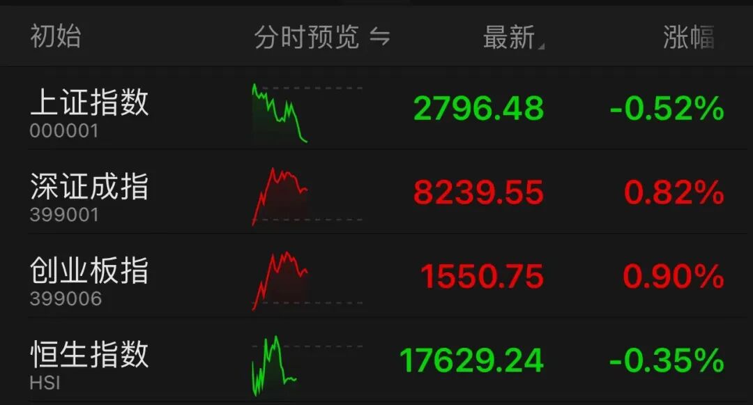 今日早盘,银行股再度重挫,导致上证指数、上证50纷纷创出阶段性新低,上证指数跌破2800点,小盘成长股则大面积反弹,创业板指、科创50等股指飘红。