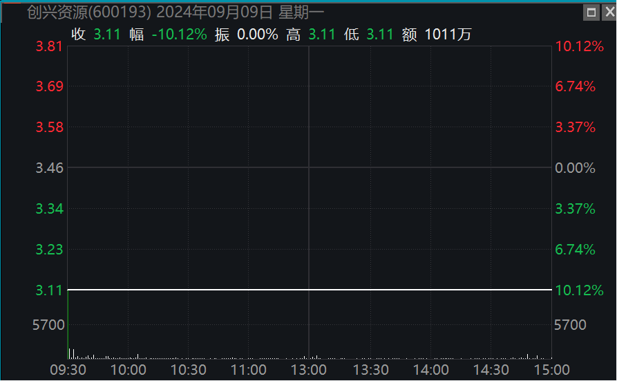 二级市场方面,创兴资源在9月9日一字跌停。