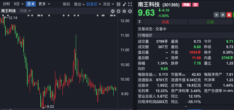 2024年上半年,南王科技实现营业收入5.87亿元,同比增长12.1%;实现净利润2203.38万元,同比下滑35.11%。