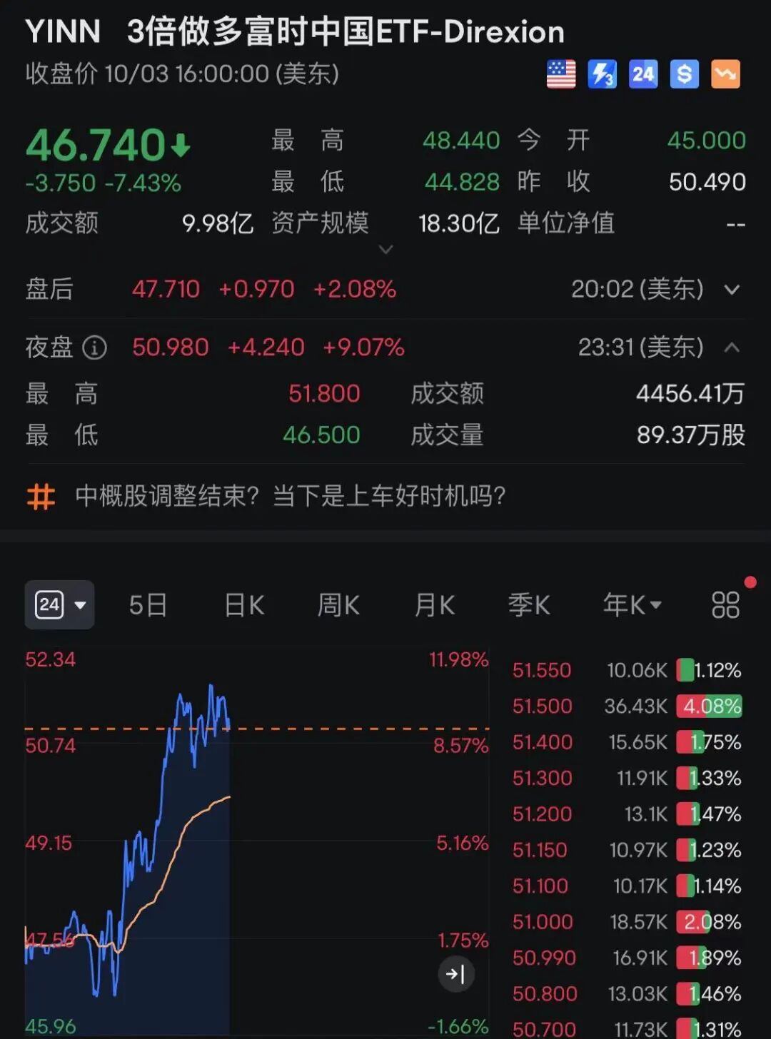 中概股及ETF夜盘也强势拉升,3倍做多富时中国ETF涨超10%,房多多涨近9%,2倍做多中国互联网股票ETF涨超8%,京东、携程网涨超6%。