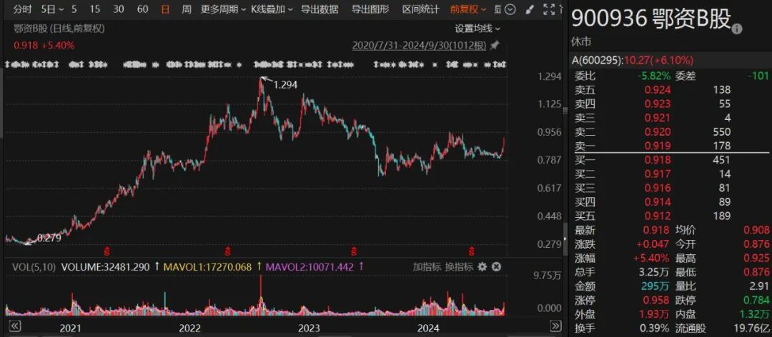 从盘面上看,鄂尔多斯B股日成交量在几十万股到上百万股不等,天定公司等(香港资产公司一直在明面上增持)的持续买入,成为稳定公司B股股价走势的重要力量。