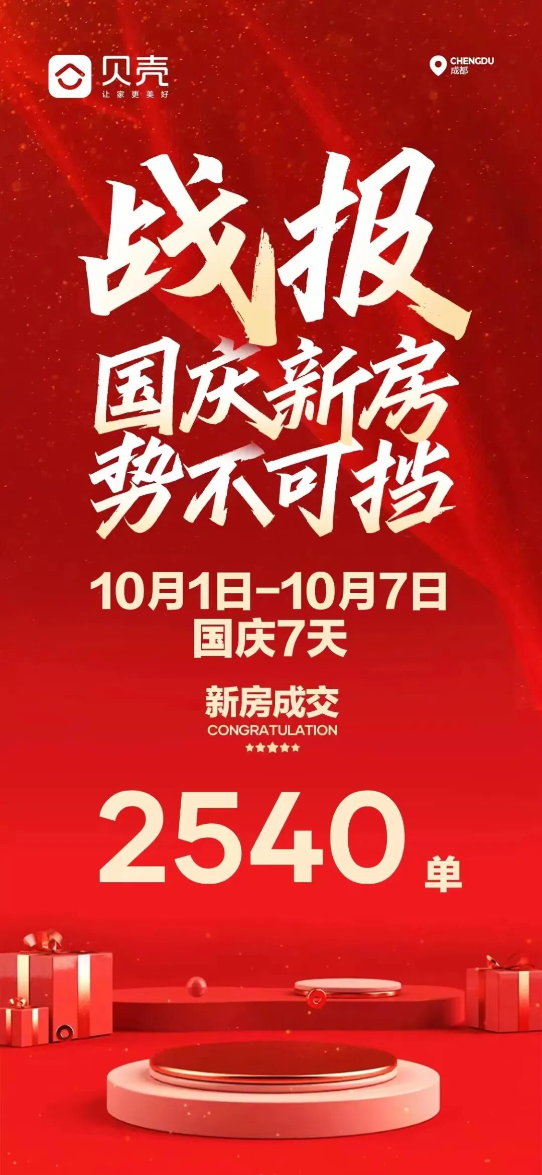 根据贝壳找房披露的数据显示,截至10月6日,国庆假期大成都范围内仅贝壳渠道已成交新房超过2500套。