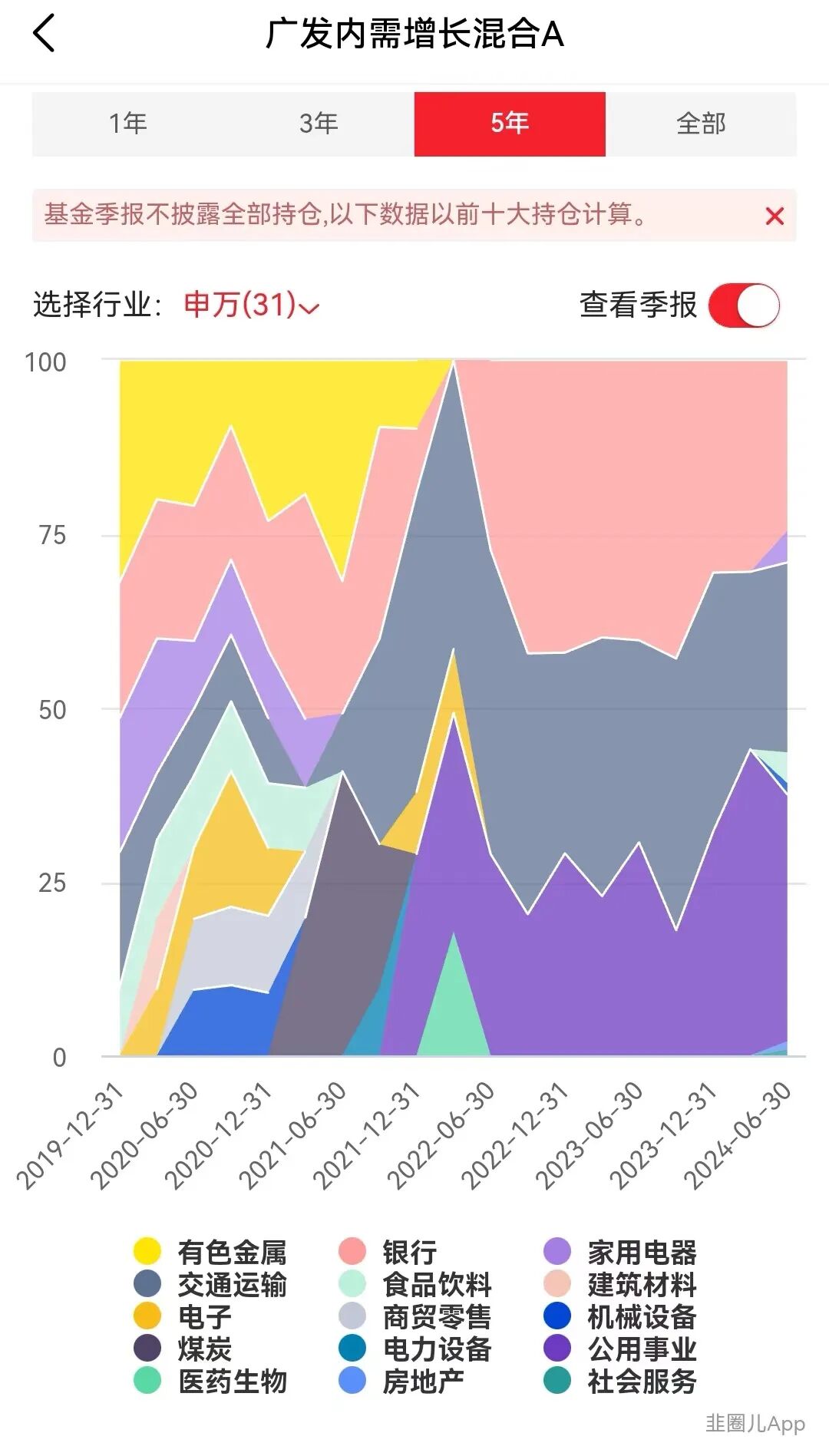 而他近年来重仓配置的电力股,整体波动较低,打底的银行股,本就是低波行业,上半年也增配了。
