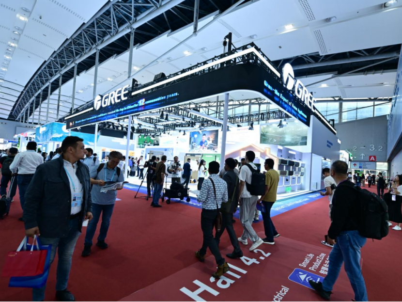 在格力电器的展位,记者看到,格力近年来大力发展的多元化产品已经占据“C位”,格力全域养鲜冰箱、新二代热泵洗烘护一体机、多功能空气能热泵热水机、高温地区专用空调等新产品不断吸引海外采购商驻足。