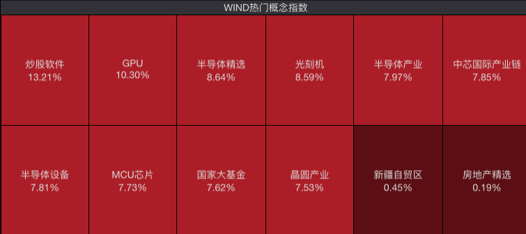 基金方面,芯片类ETF基金现涨停潮。芯片ETF、集成电路ETF、芯片龙头ETF等逾20只基金触及涨停。另外,科创信息ETF、科创50ETF、科创板50ETF等盘中均涨超10%。