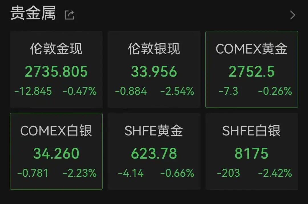 近日连续创下新高的黄金、白银纷纷回调。