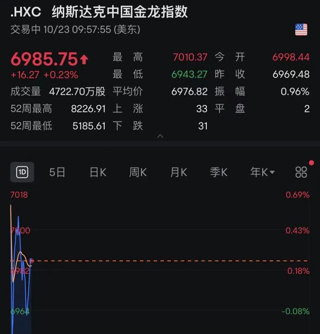 而纳斯达克中国金龙指数在经历低开后一度翻红。