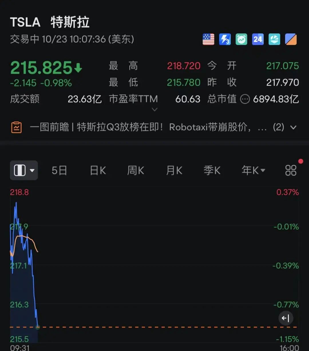 特斯拉在美股盘后将公布业绩,目前分析预计,盈利、利润率可能“触底反弹”,环比来看或有所改善,但仍面临压力。晚间,特斯拉股价跳水跌近1%。
