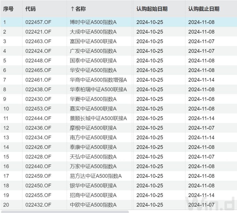 另外值得一提的是,10月25日,20只中证A500场外指数基金也将集体发售。