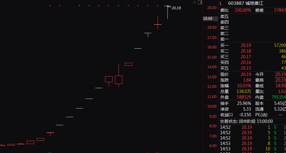 10月15日复牌后,城地香江开启“连板”行情,并延续至10月22日,在稍作休整后,10月24日起再度涨停。10月30日,城地香江股价再次涨停——在12个交易日内收获9个涨停板。