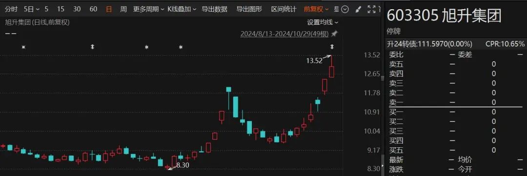 值得一提的是,停牌前几日,旭升集团在二级市场已经开启大涨模式,10月25日、10月28日和10月29日,该股股价分别收涨4.63%、10%以及4.67%,三个交易日累计涨幅近20%。