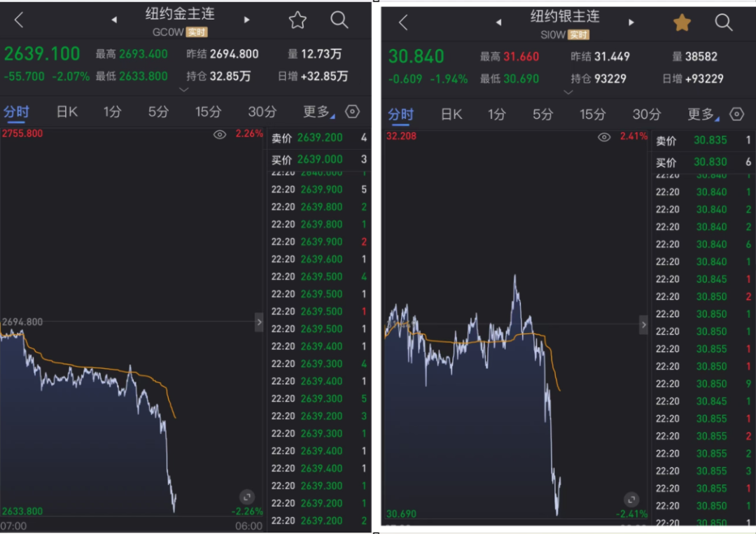 截至发稿,纽约金日内跌超55美元/盎司,最新报2639美元/盎司。纽约银日内跌近2%。布伦特原油失守72美元/桶,日内跌幅2.55%。