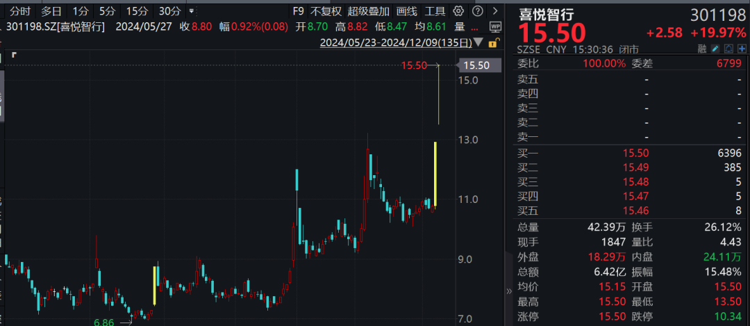 微盘股延续强势,板块指数今日再度放量高开高走,创历史新高。喜悦智行开盘20%涨停,连续第2日封板,诺邦股份、皮阿诺、建艺集团、塞力医疗等近20只流通市值低于约25亿元的个股涨停。