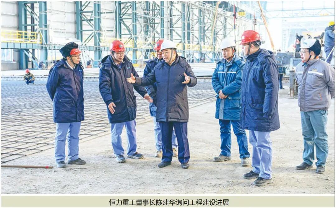 1月1日一大早,恒力集团董事长、总裁陈建华就来到恒力重工二期项目建设工地,走现场、盯进度、问需求。