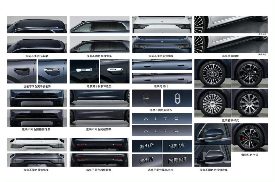外观方面M8和M9略有不同,但同样很有辨识度,申报图中出现了密辐和运动两种轮毂。动力方面,新车将搭载1.5L增程器,功率为118kW,四驱版本则配备前165kW后227kW的驱动电机,最高时速可达200km/h。