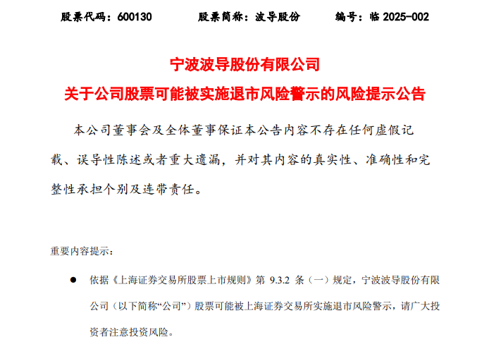 曾以“波导手机——手机中的战斗机”为人熟知的波导股份(600130)1月17日晚间宣布,公司股票在2024年年度报告披露后可能被实施退市风险警示,即在公司股票简称前加“*ST”。