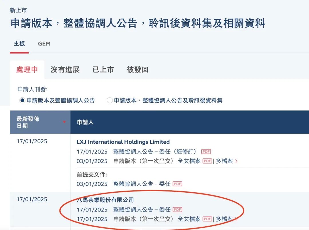1月17日深夜,八马茶业股份有限公司(以下简称“八马茶业”)正式向香港联合交易所递交上市申请,联席保荐人为华泰国际、农银国际、天风国际。