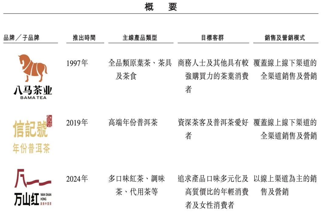 目前,八马茶业信记号子品牌专注提供高端年份普洱茶,而万山红子品牌则专注于提供迎合追求口味多元化及高质价比的年轻消费者及女性消费者的产品。