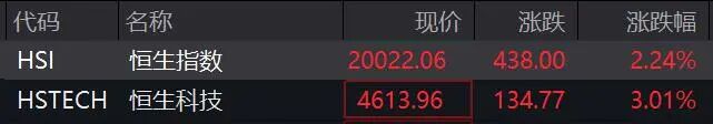 港股走高,恒指大涨逾2%收复20000点,恒生科技指数涨超3%。