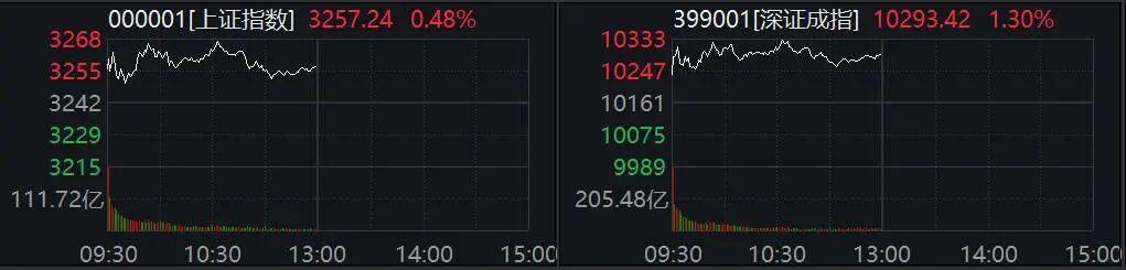 今日早盘,A股继续小幅反弹,创业板指高开高走涨逾2%,突破2100点,上证指数、深证成指等也高开走强。超4200只个股上涨,成交有放大的趋势。
