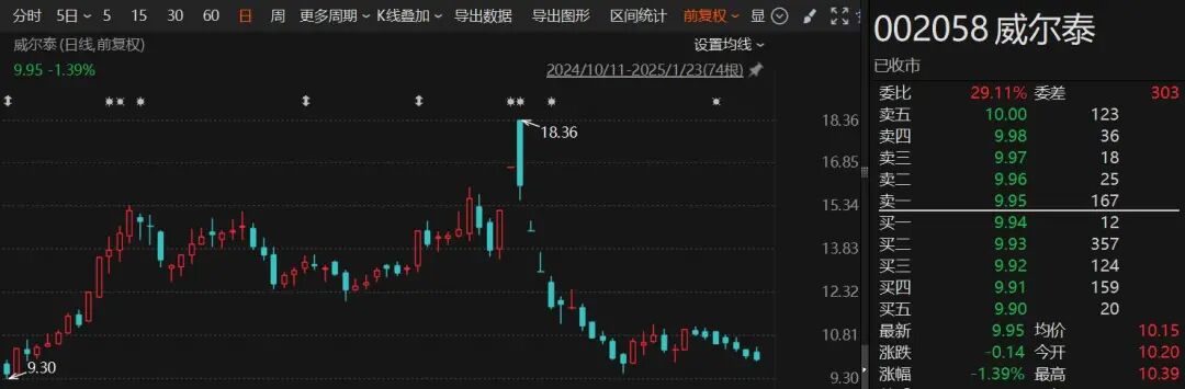 截至公告日,威尔泰2024年年度报告审计工作仍在进行中,最终财务数据以公司正式披露的经审计后的2024年年度报告为准。如公司2024年度经审计的财务数据触及《深交所股票上市规则》相关规定,公司将在披露2024年年度报告同时,披露公司股票交易被实施退市风险警示的公告。公司股票于公告后停牌一天,自复牌之日起,深交所对公司股票交易实施退市风险警示(股票简称前冠以*ST字样)。