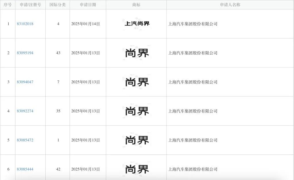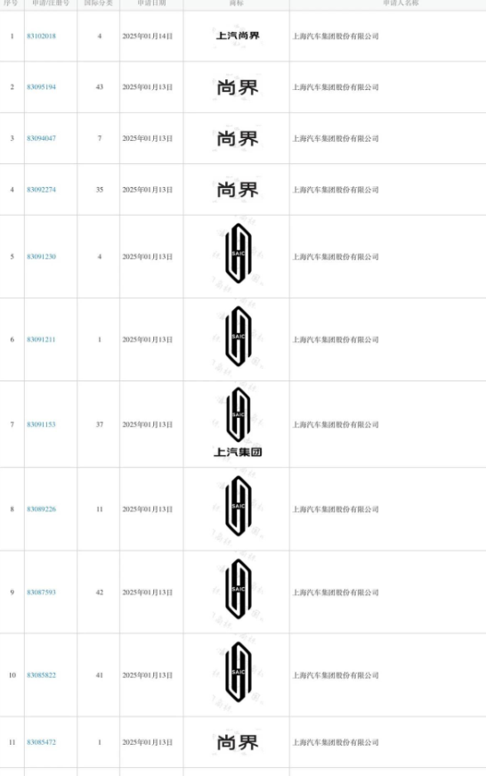 1月26日消息,国家知识产权局商标局官网,上汽集团方面已提交“尚界”“上汽尚界”等多个商标申请,申请人名称为上海汽车集团股份有限公司。
