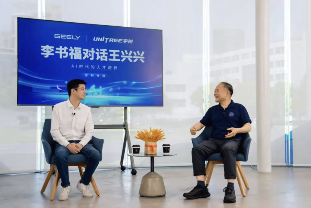 6月19日,记者从吉利控股集团获悉,近日吉利控股集团董事长李书福与宇树科技创始人王兴兴首次同框,两位来自现代制造与新兴科技企业的领军人物,开启了一场以“AI时代的人才培养”为主题的对话交流。