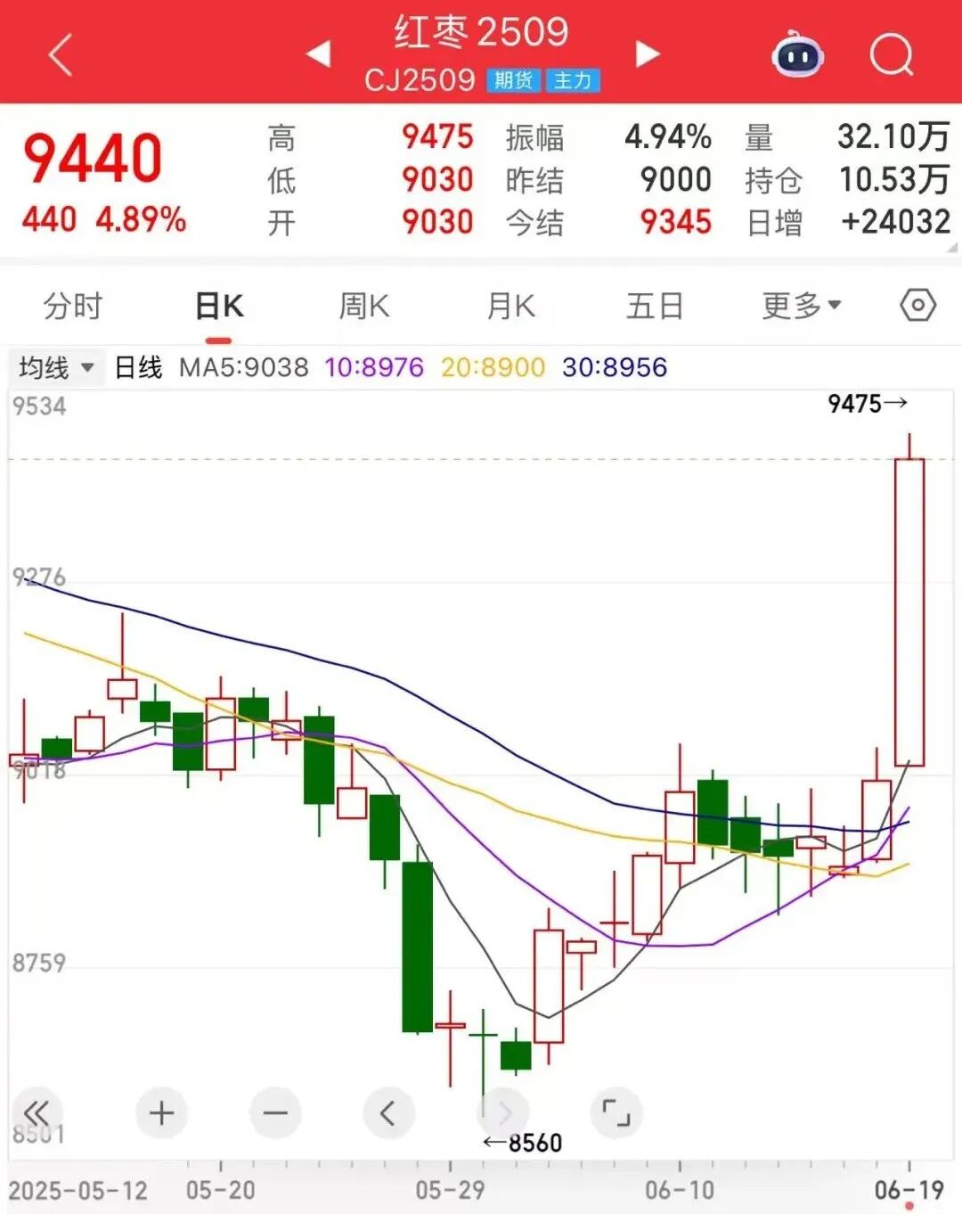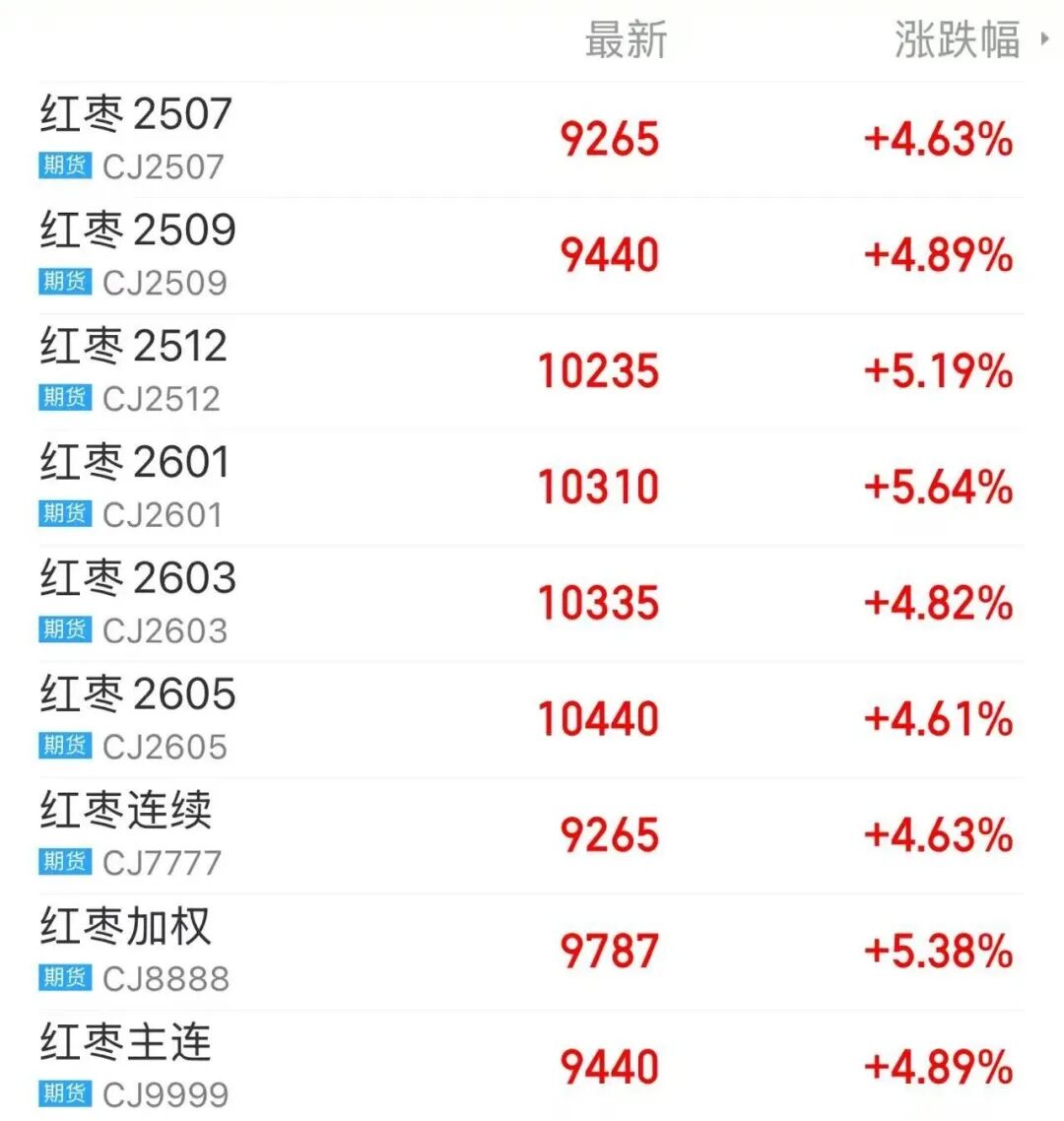 昨日,红枣期货盘面出现异动,一根大阳线成为市场关注的焦点。截至下午收盘,红枣期货主力合约涨近5%。