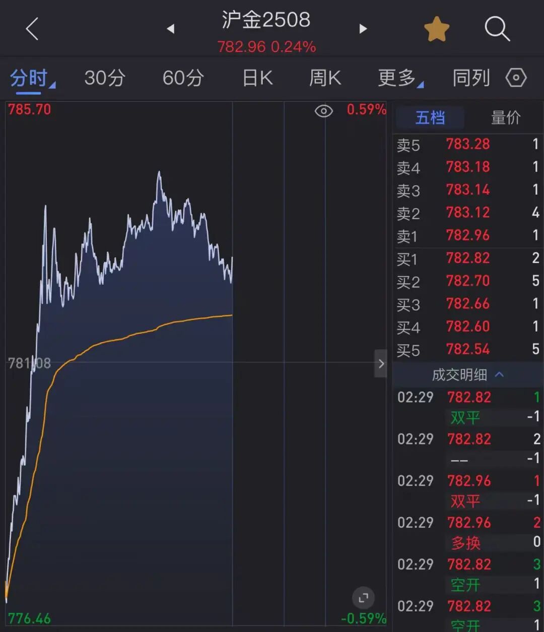 黄金短线拉升后横盘微幅震荡。