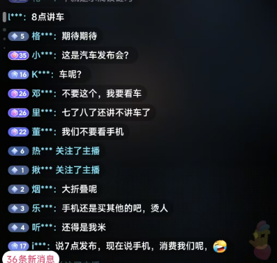 雷军短视频平台同步直播,观众持续维持在10万+。在插件中,还专门添加了小米YU7预约咨询链接。由于发布会开始时,小米手机、空调等13款新品发布占据较多时间,“车子几点,我只关心这个”“别总是把汽车放压轴”“上雷军”等评论区呼声极高。