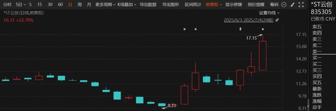 资深新三板评论人、北京南山投资创始人周运南分析称,北交所“唯二”的*ST股,于周五(7月4日)竟然逆势以30%、22.78%位列当天北交所涨幅榜冠亚军,“挑战监管底线,也希望投资者能够理性看待市场风险和冷静对待市场炒作”。