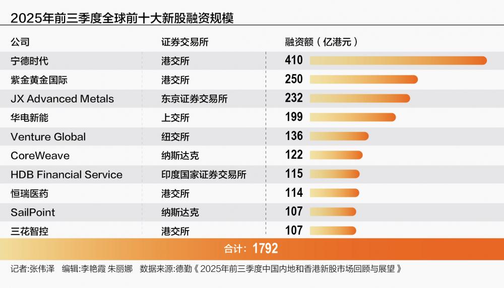 9月23日,德勤中国资本市场服务部发布《2025年前三季度中国内地和香港新股市场回顾与展望》(下称“报告”),报告指出,以集资额计算,港交所预计将蝉联全球新股集资榜首。