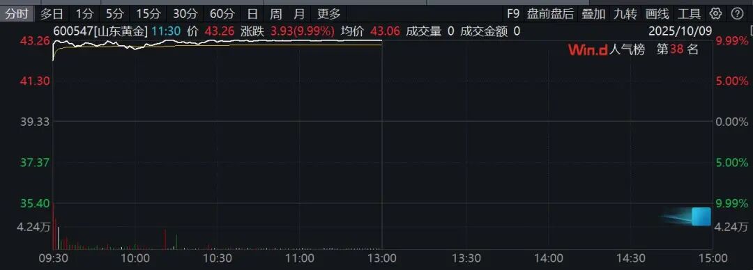 贵金属概念股早间全线大涨,板块指数盘中一度放量飙涨近9%,创历史新高。板块内所有个股飘红,四川黄金一字涨停,山东黄金也仅约1分钟就垂直封板,中金黄金、晓程科技、赤峰黄金等涨幅居前。