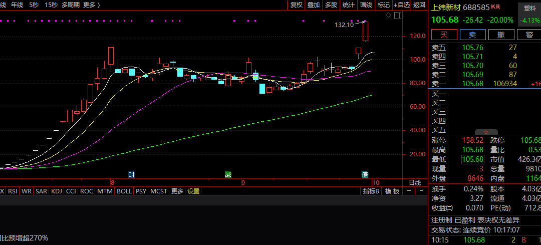 个股方面,金山软件A股、H股大涨,上纬新材(688585)复牌“20cm”跌停,合锻智能(603011)10天6板。