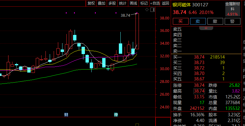 稀土永磁概念股早间集体走强,板块指数盘中放量大涨逾4%,创2010年10月以来15年新高,距历史最高点仅一步之遥。新莱福(301323)开盘20%涨停,银河磁体(300127)亦20cm封板,安泰科技、包钢股份、中国瑞林等也纷纷强势涨停或涨超10%。